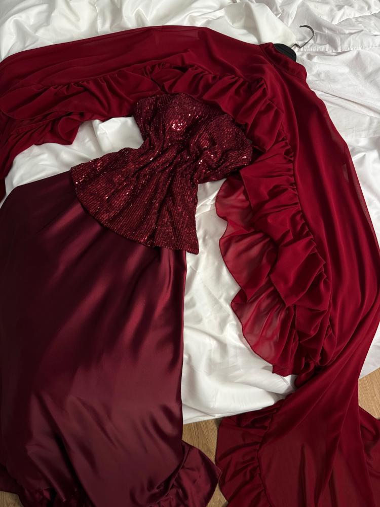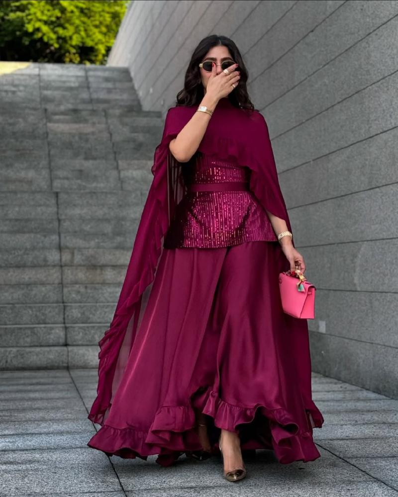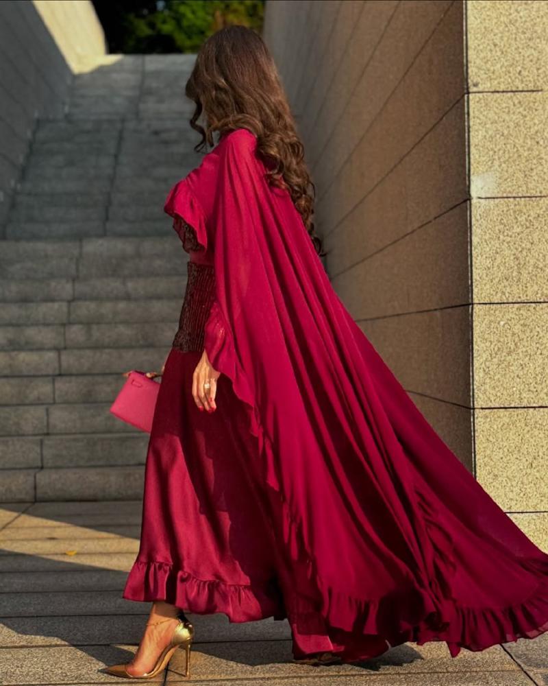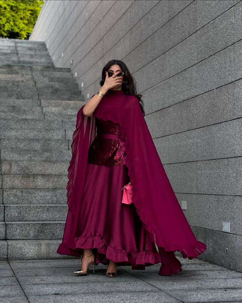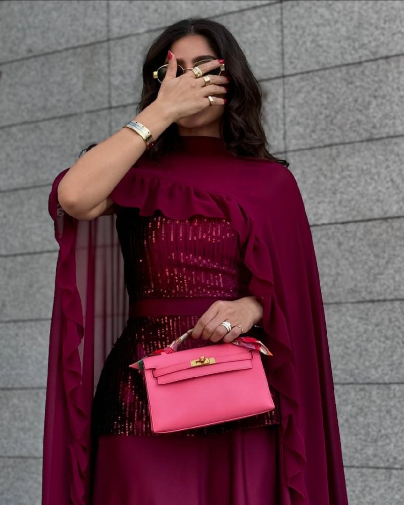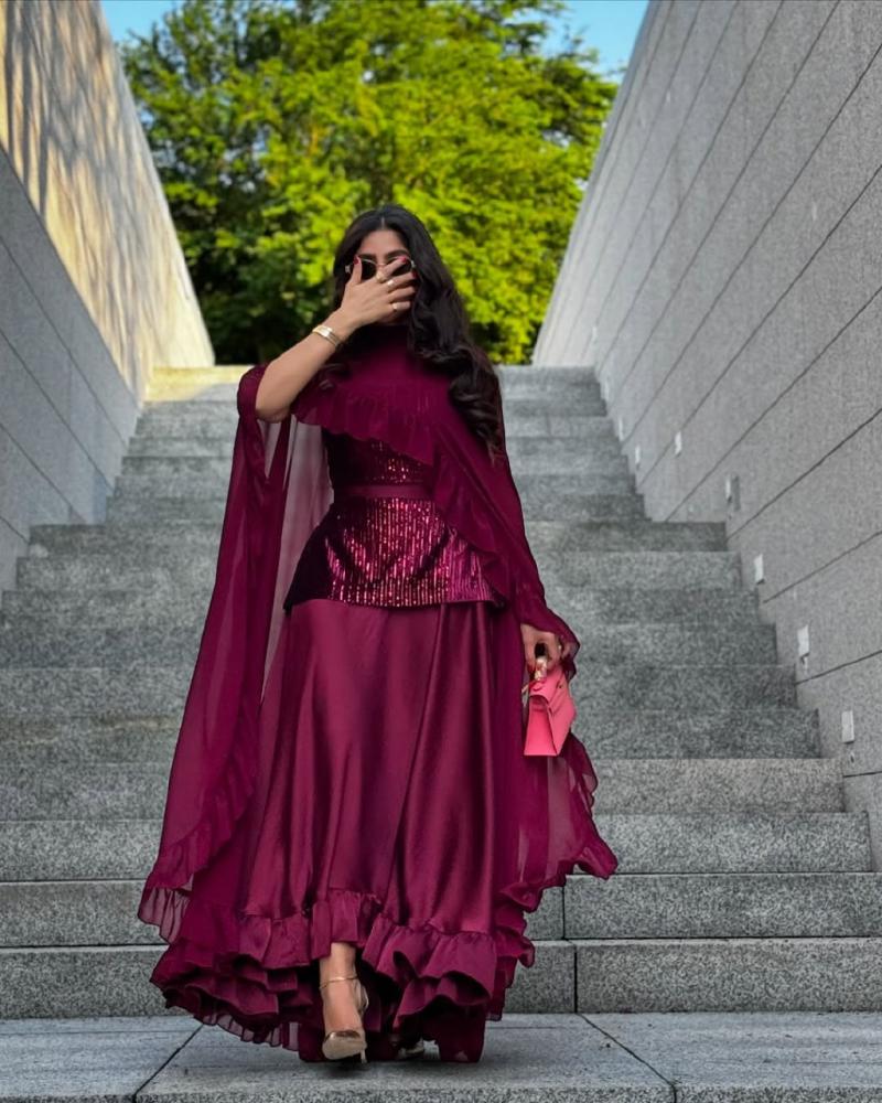 نوع التصميم/ فساتان باربـي صدر ترتر رااقي+ وشاح شيفون كلوووش + تفته حرير ناعم اسفل الفستان🦋🔥