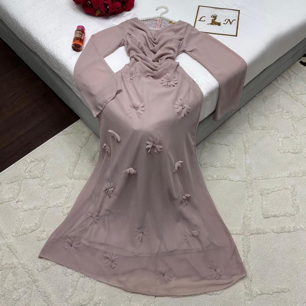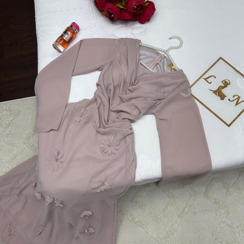 نوع التصميم/ فستان سهره شيفون الخامة/ شيفون جرجيت 🥇✅ 🥇✅ 🥇✅الألوان /لون واحدالمقاسات / S M L XL XXL طول الفستان/ وسط دليل المقاسات