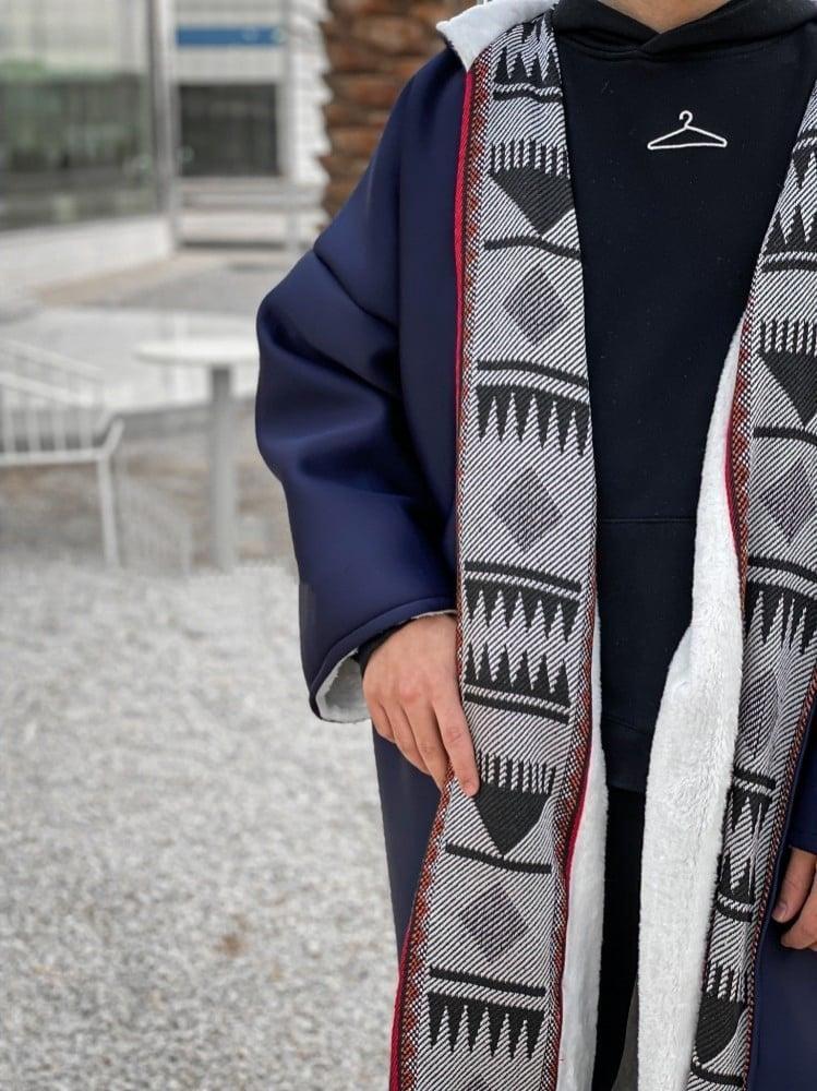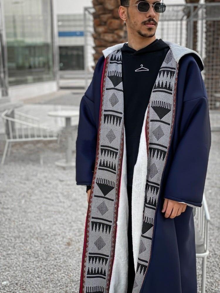 فروة مخملية كحلي بنقشة السدو البدوية المتألقة