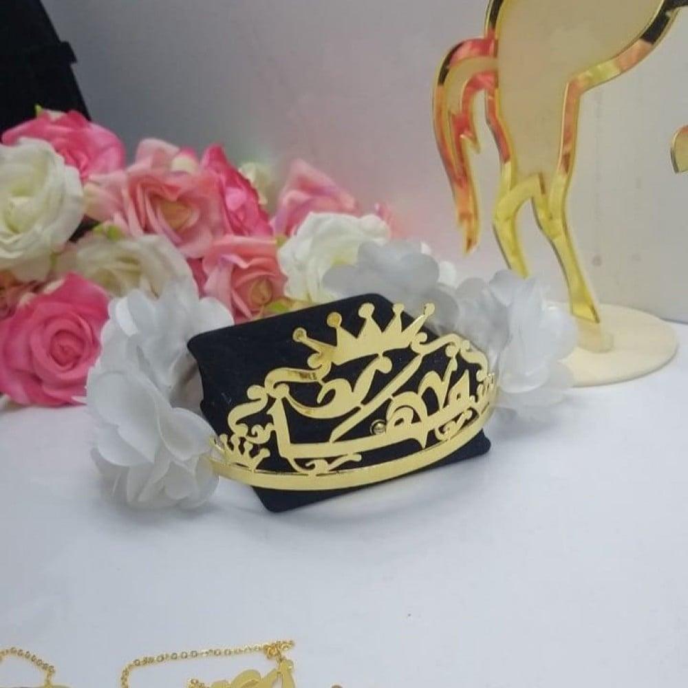 تاج ورد بالاسم للأطفال. المواصفات. تصميم حسب الطلب و بالاسم اللي تبيه; بإمكانك تغير لون الورد (ابيض-احمر); كتابه الاسم حسب طلبكمتوفر بلونيناللون الفضياللون الذهبي