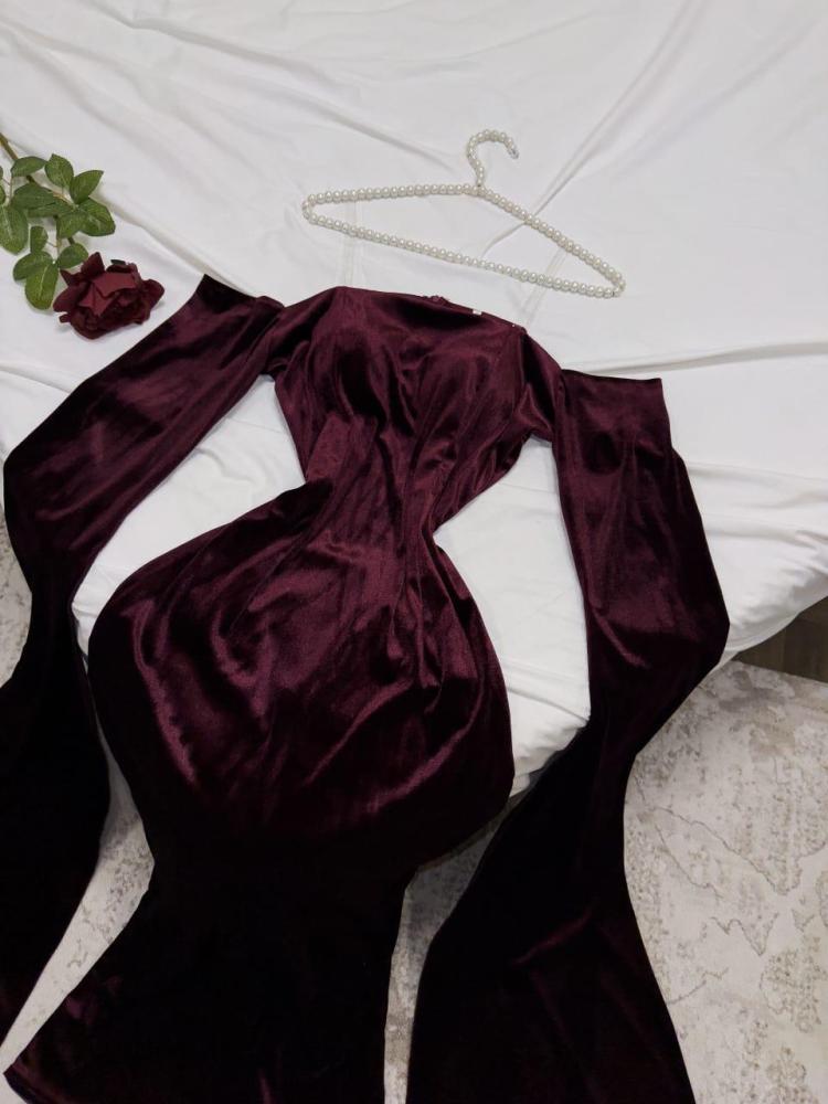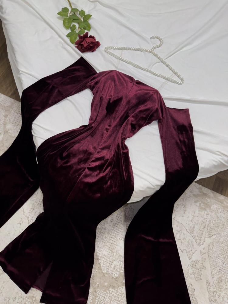 فستان سهره شتوي مخمل كوري اصلي درجه اولى