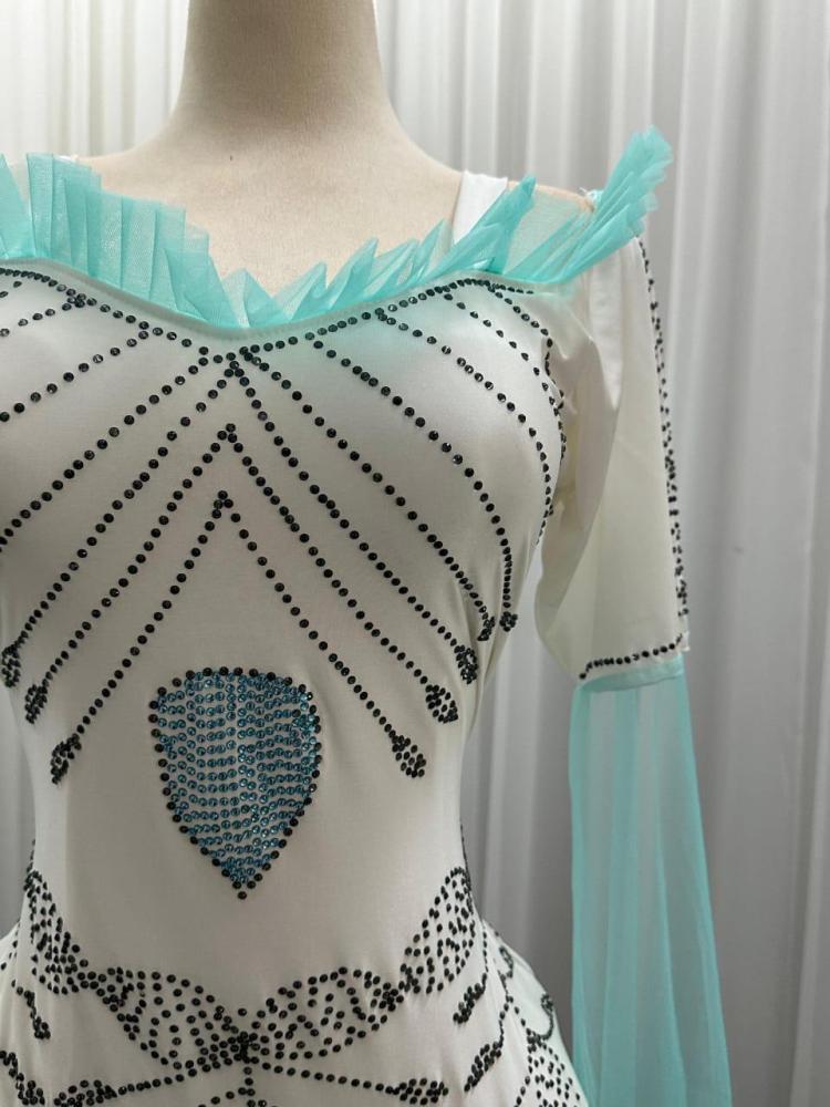 نوع التصميم/ فستان سهره كريستال استرتش+تل تطريز فصوص👍🏻🥇