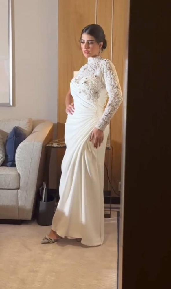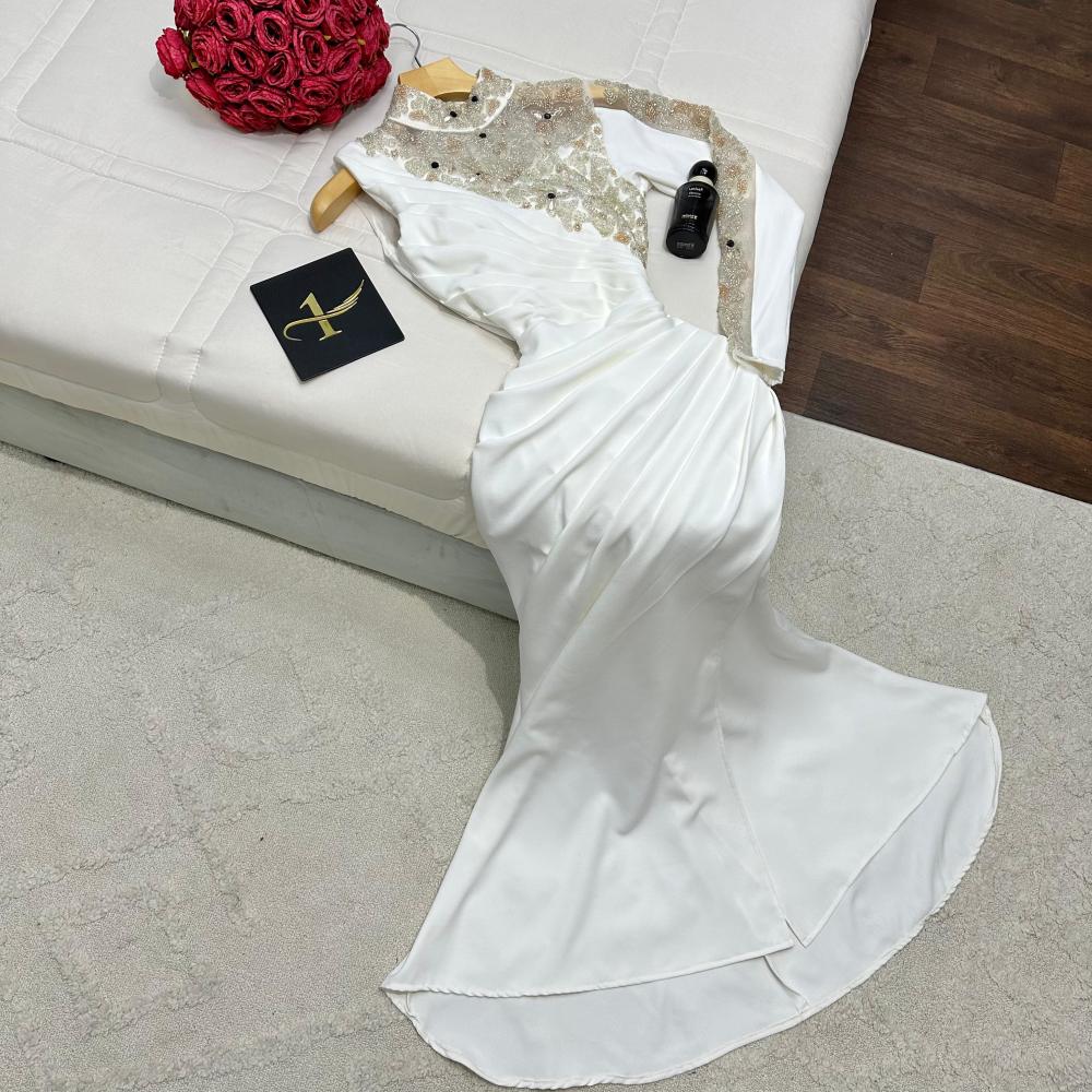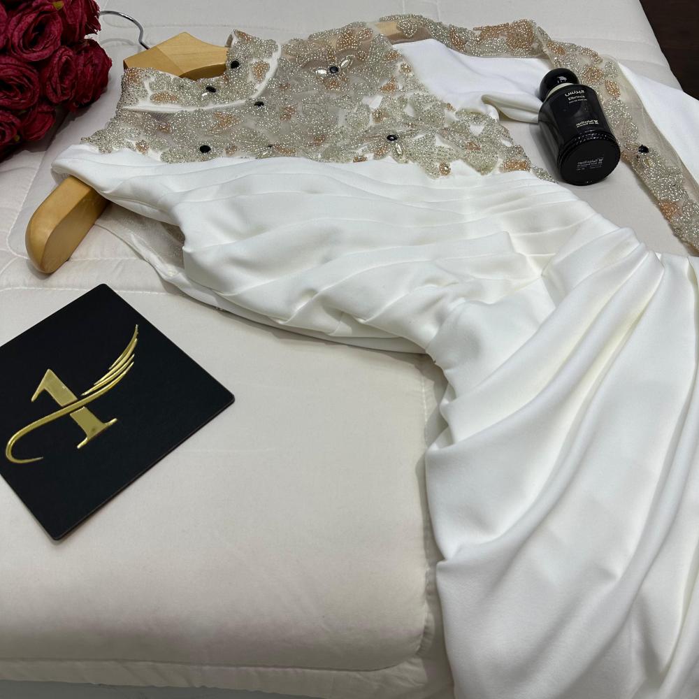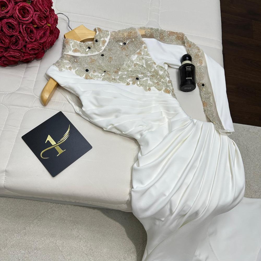 نوع التصميم/ فستان سهره باربي الخامة/ باربي مطرز 🔥⚡الألوان /ابيض المقاسات / S M L XL XXL XXXL طول الفستان/ طويل دليل المقاسات
