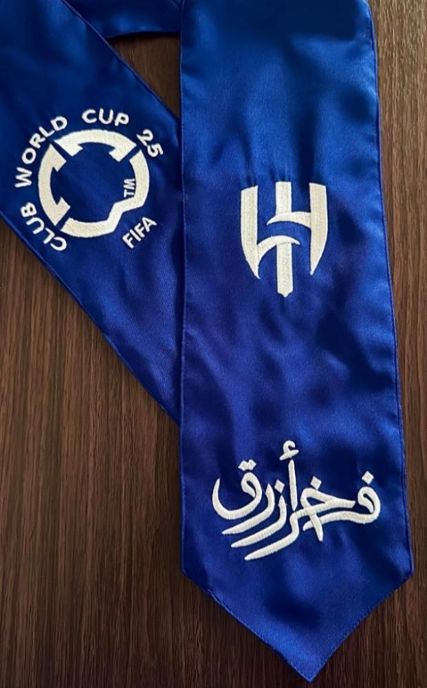احتفل بانتصارات الزعيم وارتقِ بأناقتك مع وشاح نادي الهلال الرسمي، المصمم خصيصًا لإصدار كأس العالم للأندية 2025.