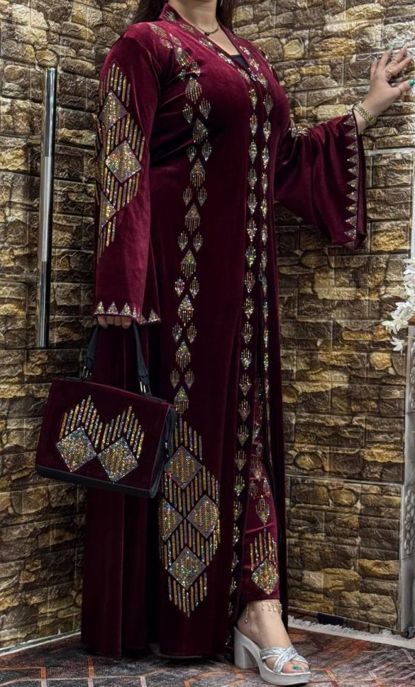 تونك بنطلون من اعلي خامة قطيفة #مخمل مع استراس ايطالي وشنطة وحزام لضبط المقاس المناسب رؤعة في الطبيعة بدون طرحة😍
