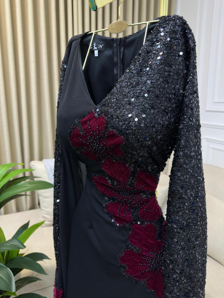 نوع التصميم/ فستان ترت وورود وفصوص على القماش راقي🦋🔥