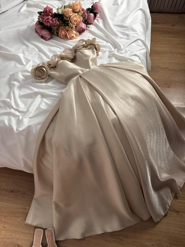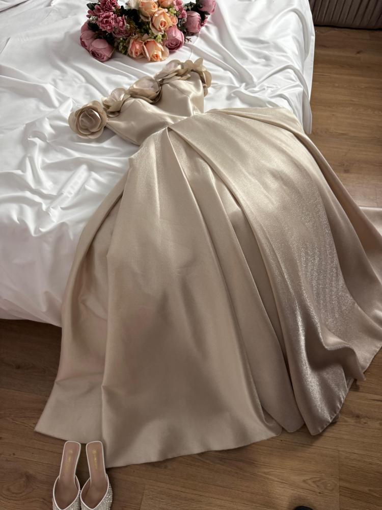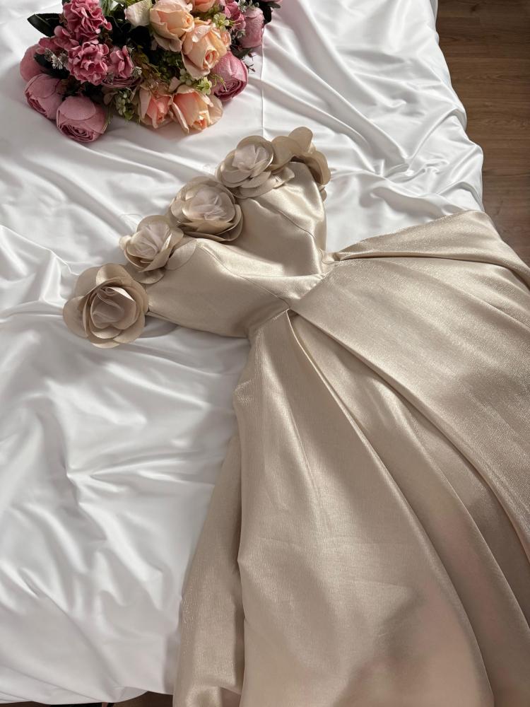 نوع التصميم/ فساتين سهرة رووسي راااقي لمعه + صدر مورد ميكادو معا تل👌🏻🔥