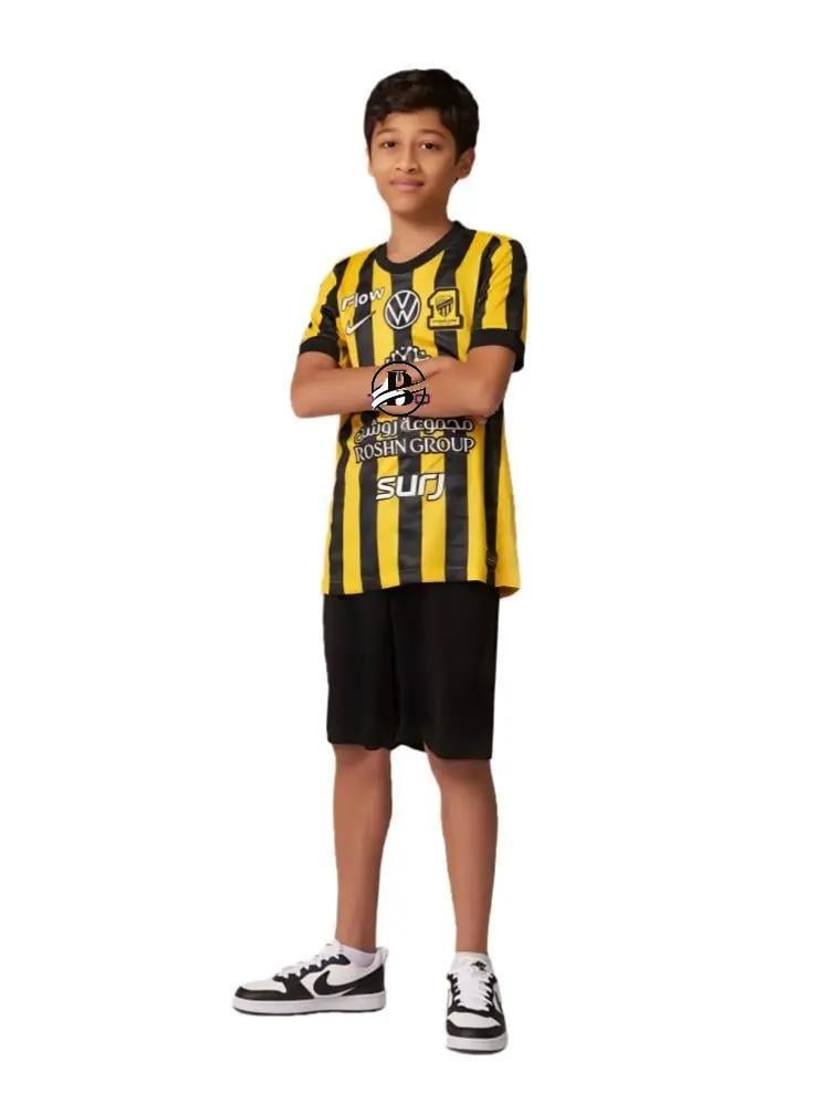 طقم الاتحاد تيشيرت مع شورت نادي الاتحاد الأساسي الجديد2025/2026جميع المقاسات متوفره، رجالي شبابي ولادي للكبار والصغارمع إمكانية طباعة الاسم والرقم خلف التيشيرت