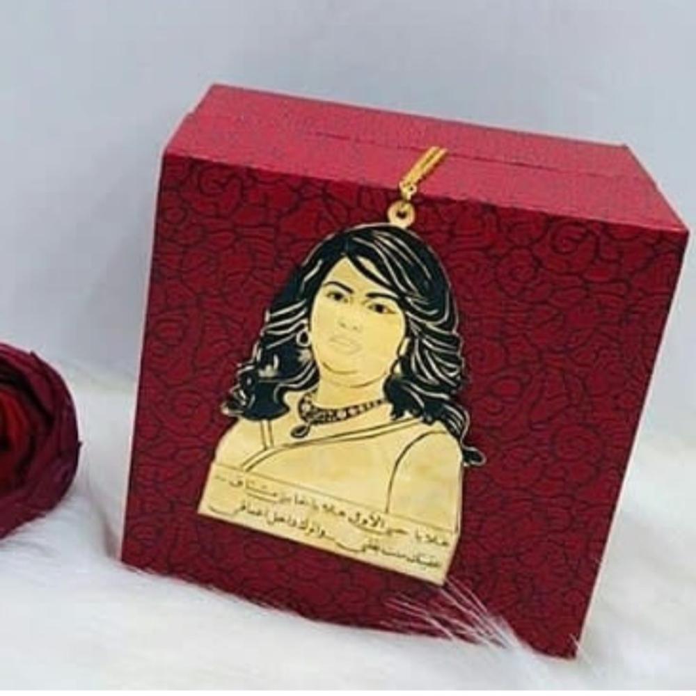تعليقة نحت صوره مع الاسم والدعاءتفاصيل المنتج.1 تعليقة مصممه بالصوره حسب الطلب.2 مطليه ذهب. او فضه حسب طلبك3 الصوره نحاس.4 نمزج الهدايا بالاسم والصوره