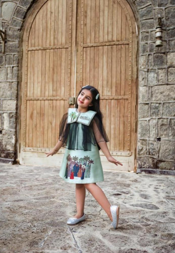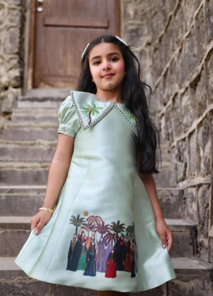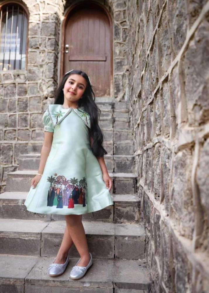 قصير ، وهو مثالي للاحتفال باليوم الوطني السعودي 95أو اي مناسبة وطنية او عائلة اخرى . مصنوع من أجود أنواع الدانتيل الناعم ليتناسب مع بشرة أطفالك الحساسة، كما يتميز بتصميمه الرقيق الذي يضفي لمسة من الأناقة على مظهرهن.