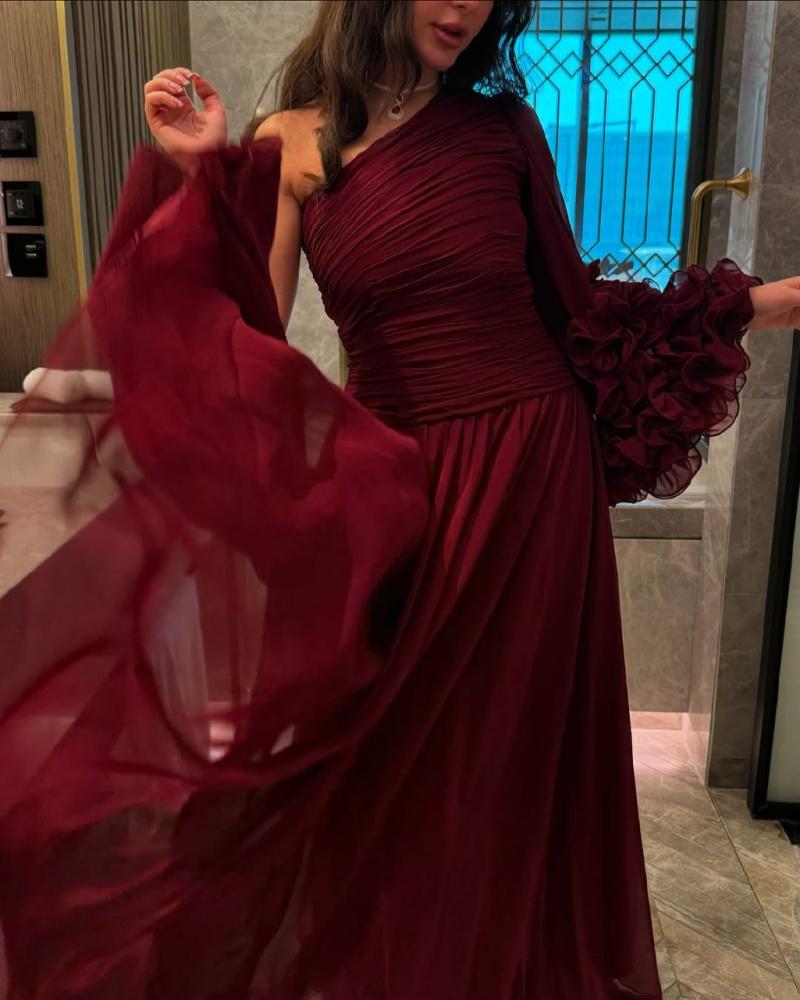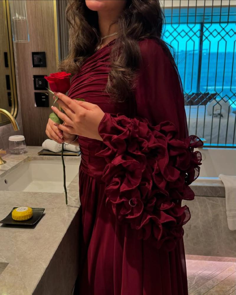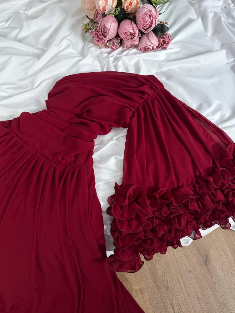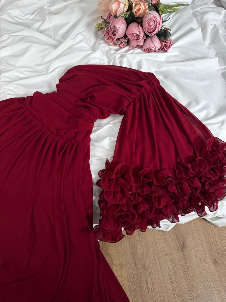 نوع التصميم/ فساتان شيفون راااقي الاصلي + بطانه + كم واسع مبطن بسلك نافش🦋🔥