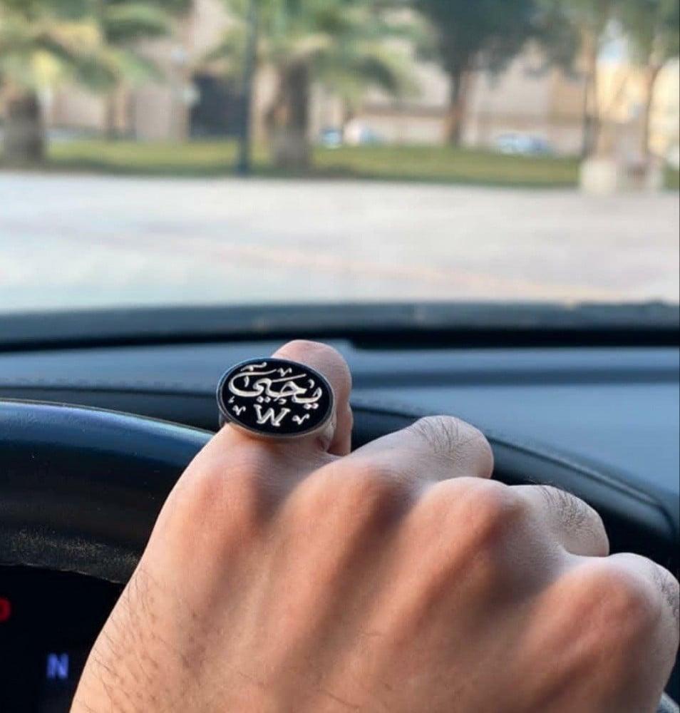 خاتم ملكي بالاسم رجاليتصميم حسب اختياركفضه خام إيطالي عيار 925حفر الاسم بتقنيه الليزرمع امكانية تغير لون الحجرمتوفر اكثر من لون للكتابه
