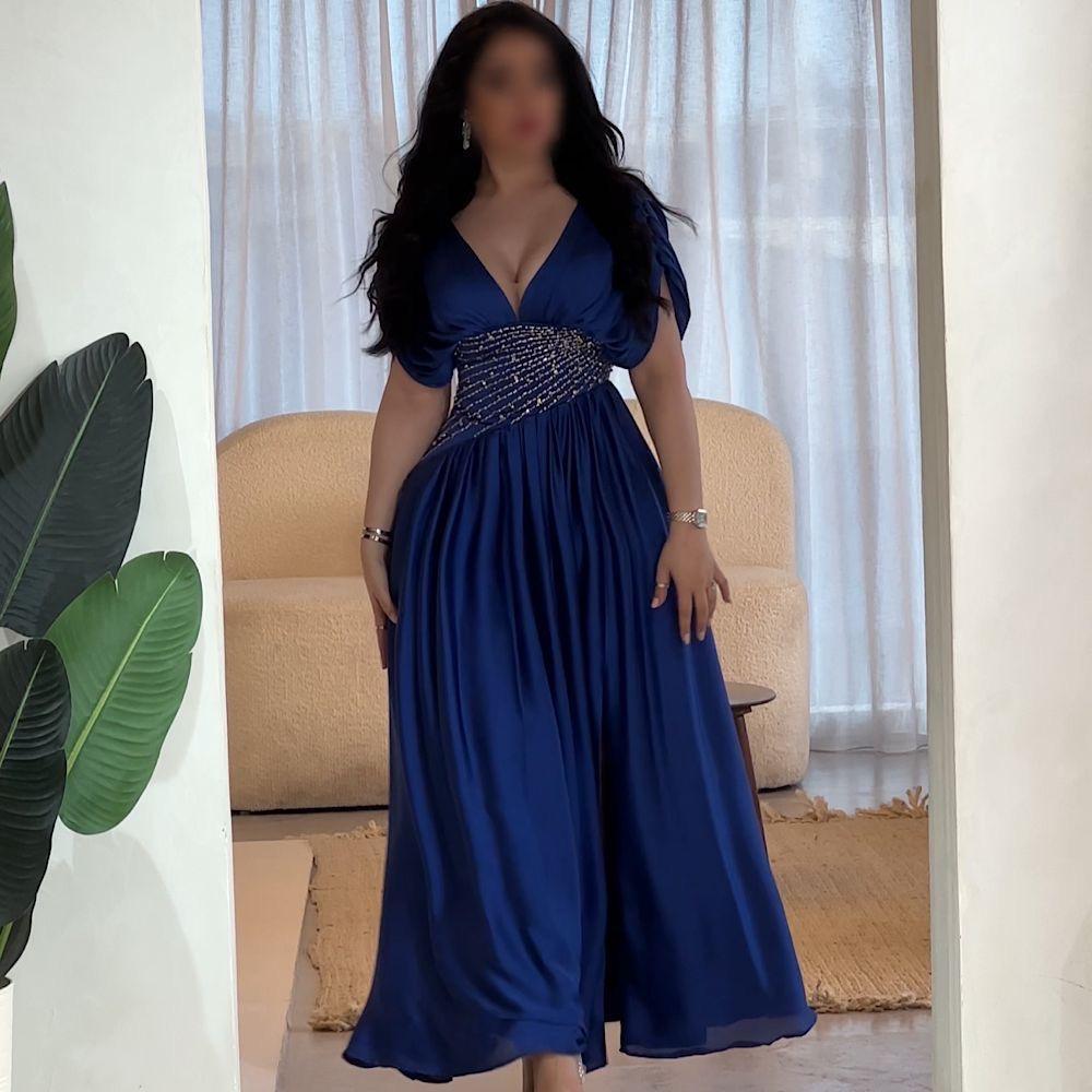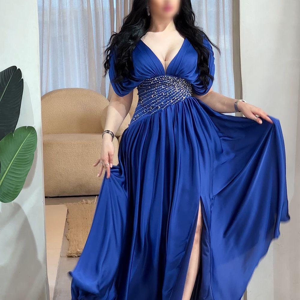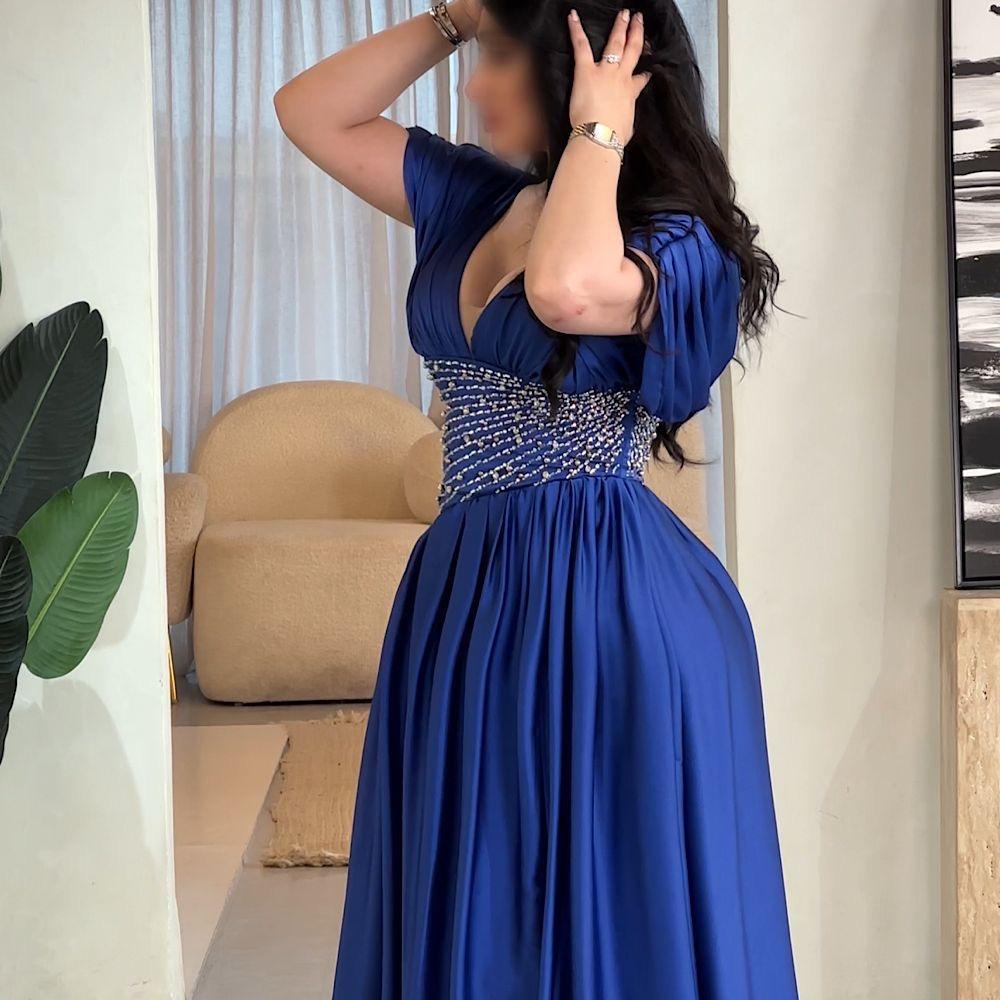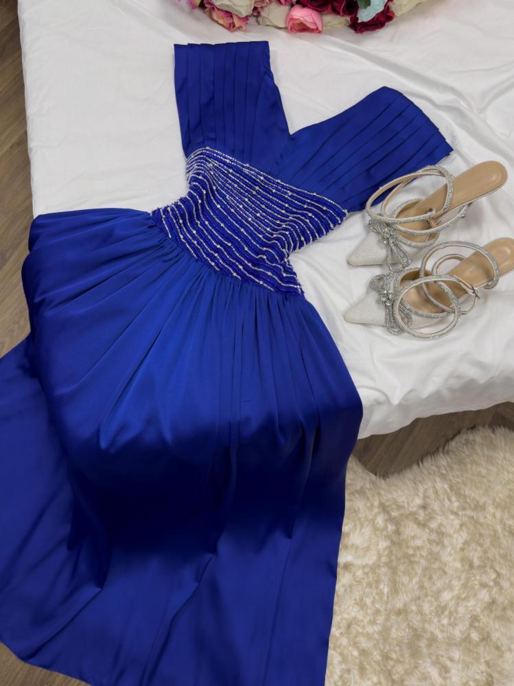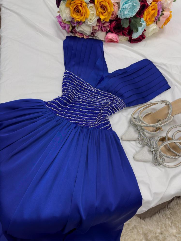 نوع التصميم/ فستان سهره ناعم تم صنع الفستان من القماش الراقي التفته الحرير مضاف اليه تطريز يدوي شك متقن ، الذي يضفي عليه لمسة من الفخامة والتميز ، تفاصيل التطريز على الخصر والكسرات الجميلة تضفي على الفستان بريقًا وجمالًا لا يقاوم ، ستشعرين بالثقة والأناقة في كل خطوة تخطوينها .