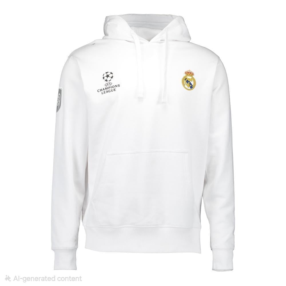 أضف لمسة من الأناقة الرياضية لخزانتك الشتوية مع بلوفر ريال مدريد الأبيض ، بتصميم عصري يحمل شعار النادي الملكي الشهير.